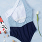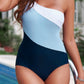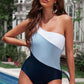 Get ready to turn heads with our chic and stylish Asymmetrical One Piece Swimsuit. This eye-catching swimsuit is perfect for making a statement at the beach or pool. The sleek color block design in shades of white, light blue, and navy is both modern and flattering, ensuring you look and feel your best. Made with high-quality materials, this one piece asymmetrical swimsuit provides the perfect blend of comfort, support, and style.
