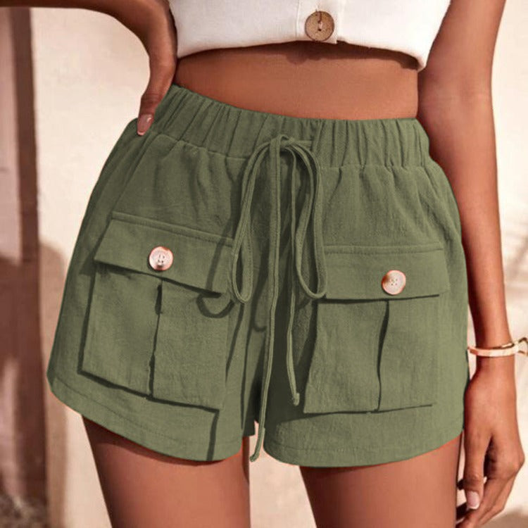 Perfect for the urban explorer, outdoor enthusiast, or anyone seeking comfort without sacrificing style. Whether you're embarking on a weekend hike, strolling through the city streets, or simply lounging at home, these shorts will become your go-to choice. Pair them with a casual tee for a laid-back look or dress them up with a button-down shirt for a more polished ensemble. Embrace the freedom of movement and practicality without compromising on style. Experience the perfect blend of fashion and functionality with our Tie Waist Cargo Shorts today.